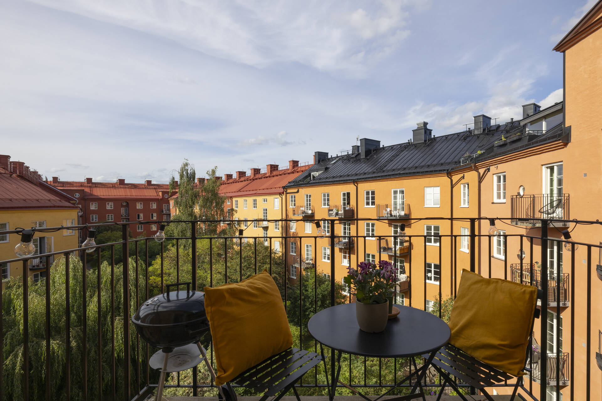 *FRI ANDRAHANDSUTHYRNING OCH JURIDISK PERSON ACCEPTERAS* Lägenheten totalrenoverad år 2019 och är ytterst välplanerad samt genomgående med ljusinsläpp från två olika väderstreck. Lägenheten är belägen högt upp i huset med balkongen mot föreningens grönskande och idylliska innergård. Huset byggdes år 1926 men totalrenoverades år 2019. Bostaden är tyst eftersom den är utrustad med nya välisolerade, ljuddämpande fönster framför vackra djupa fönsternischer. Hela den moderna interiören är vald med tanke på stil, hållbarhet och bekvämlighet. På föreningens innergård finns det en markterrass med utemöbler och plats för flertalet gäster. För extern förvaring finns källarförråd med nyttjanderätt. Stabil och välskött förening som äger marken. Flexibelt tillträde efter köparens önskemål.