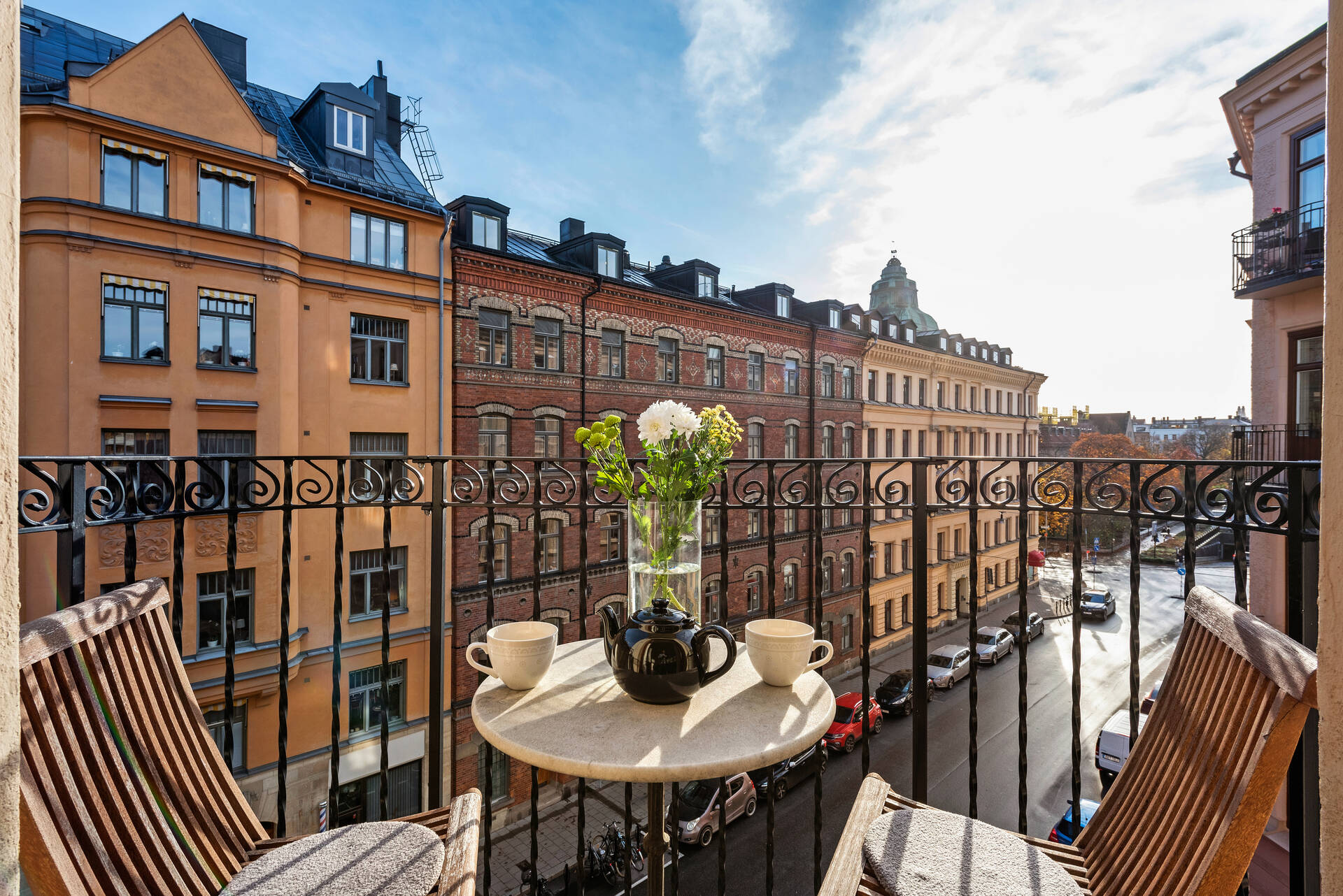 Magnifik sekelskiftestrea högt upp i huset med solig balkong i söderläge mot lugn gata med härlig utsikt. På en attraktiv adress tre trappor upp med hiss i denna sekelskiftesfastighet anno 1891 finner ni en väldisponerad bostad med fantastisk takhöjd om ca 3m med bevarade tidsenliga detaljer som vackra dubbeldörrar, takrosetter, höga golvsocklar och stuckaturer. Stora fönsterpartier i tre väderstreck med speglade nischer som ger ett härligt ljusinsläpp. Det öppna köket har generös förvaring bakom skåpsluckor i vit färg och erbjuder all önskvärd maskinell utrustning. Matplatsen i bostaden är placerad vid köket och rymmer det större sällskapet. Vardagsrummet är inbjudande med fina ytor för såväl önskad soffgrupp samt vacker och praktisk platsbyggd bokhylla. Två sovrum, master har hörnläge med balkong, det mindre används som gästrum. Platsbyggd förvaring i garderober. Pampig entré med god förvaring i garderober och inbyggd tvättmaskin. Välkommen till en bostad som har allt.