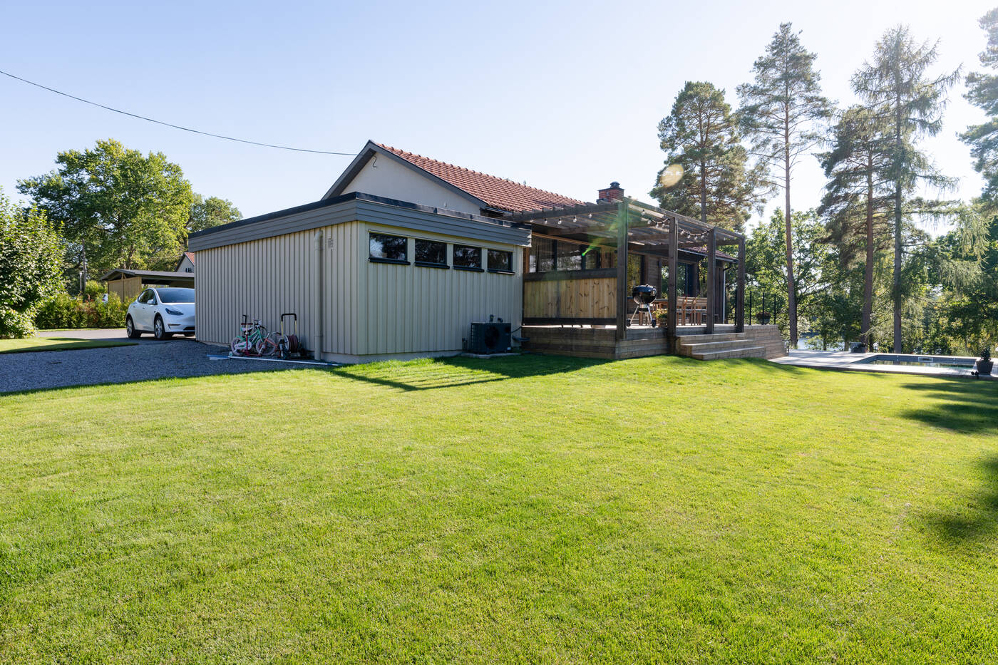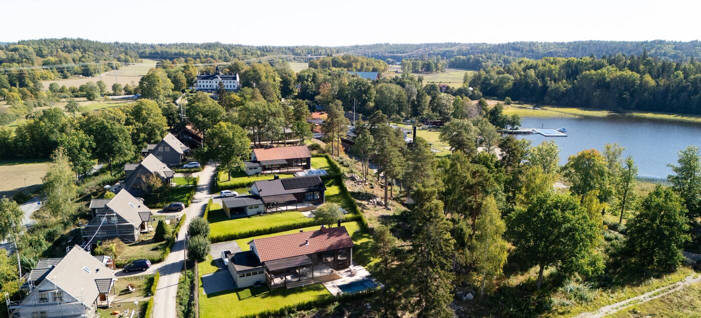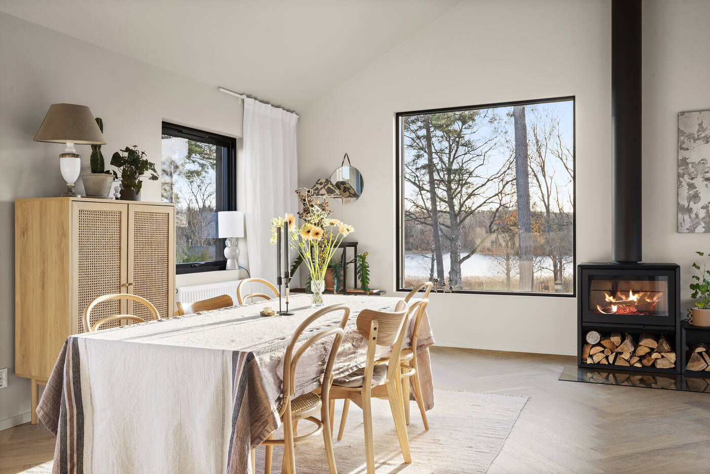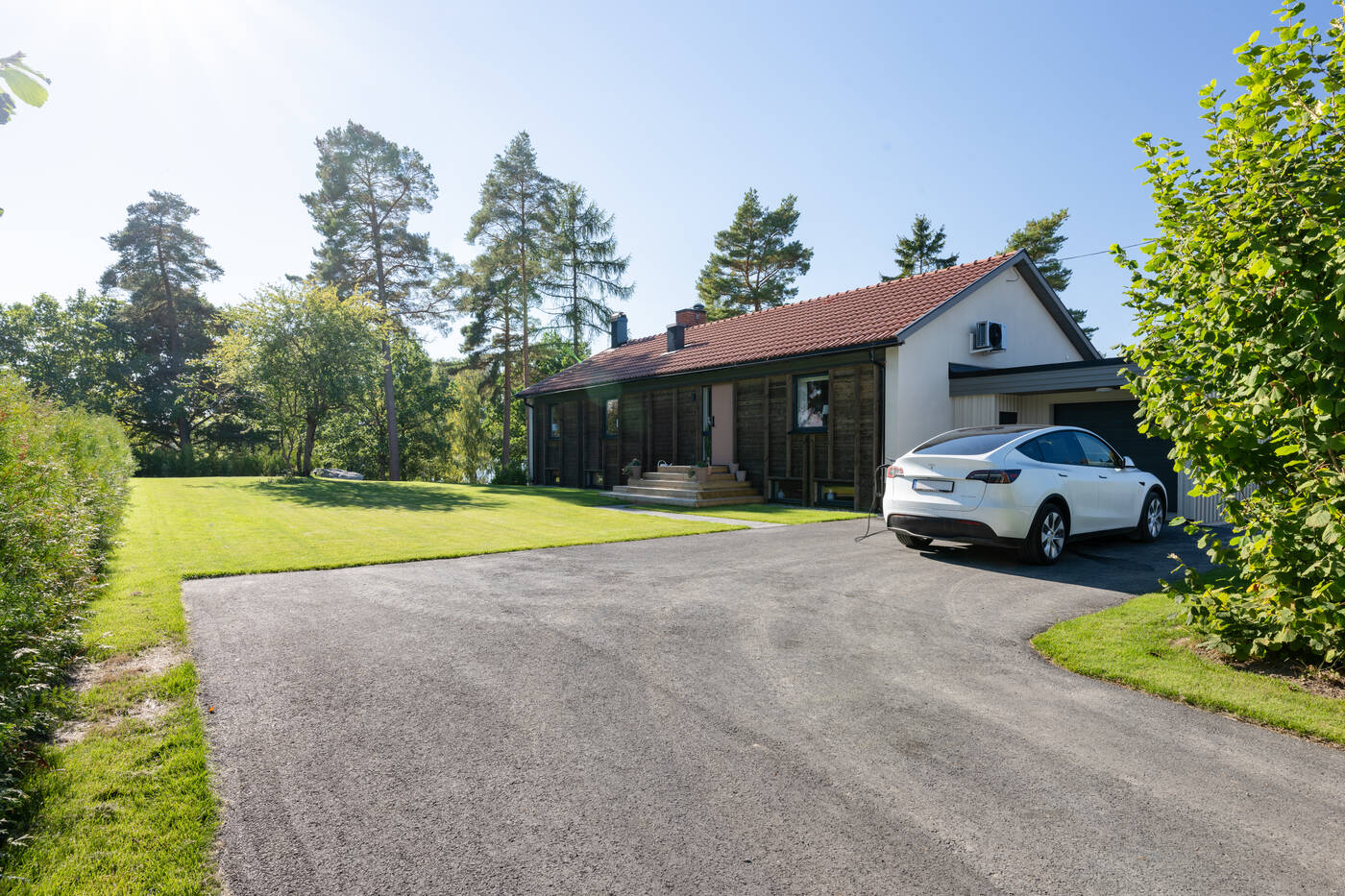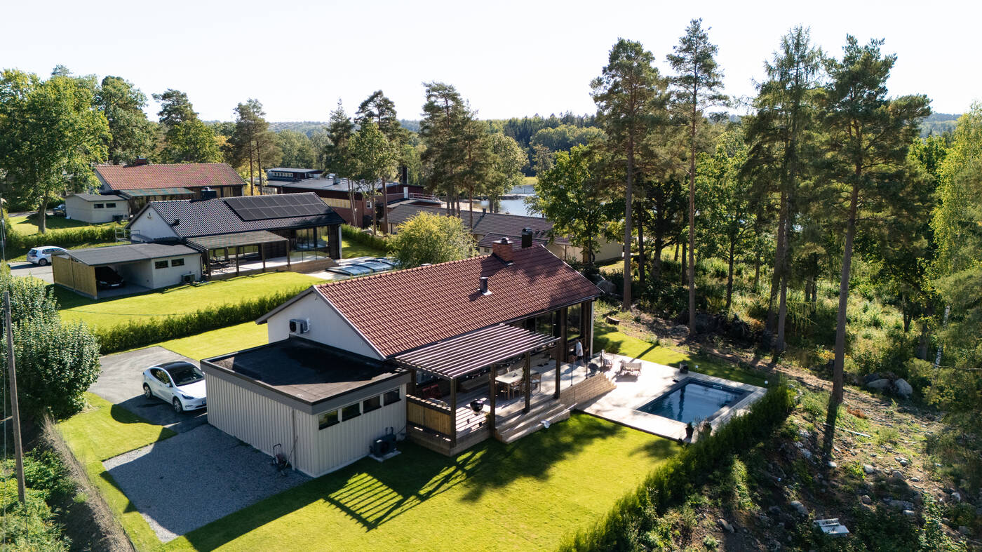 Välkommen till detta exklusiva arkitektritade hus som har renoveras under 2024 med magisk sjöutsikt, egen båtplats, pool & fristående garage. Friköpt hus i två plan med totalyta om 225 kvm, stor plan tomt på 1044 kvm med grönskande växter & träd. Huset erbjuder påkostade materialval och genomtänkta detaljer för en modern känsla där villan fått ett helt nytt liv i en exklusiv design. Njut av ett familjärt boende med tanken på att leva ett liv med bekvämligheter. Här finns det mesta man kan önska sig, som fyra sovrum (möjlighet att skapa ett femte), två badrum, gästwc, tvättstuga, ett stort kök med vacker sjöutsikt, högt i tak, härligt ljus genom generösa glaspartier som skapar den när känslan av att leva nära naturen. Härifrån finns det utgång till stora trädäcket där poolen ligger vackert med storslagen utsikt. Vardagsrum finns på bägge våningsplanen med vacker sjöutsikt, härligt ljus genom stora fönster, mysiga braskaminer samt altandörrar mot altanen och trädgården som skapar en harmonisk känsla av inomhus och utomhus. Det finns gott om parkeringsutrymme, fristående garage med laddningsstation för elbil och generöst med förrådsutrymmen.