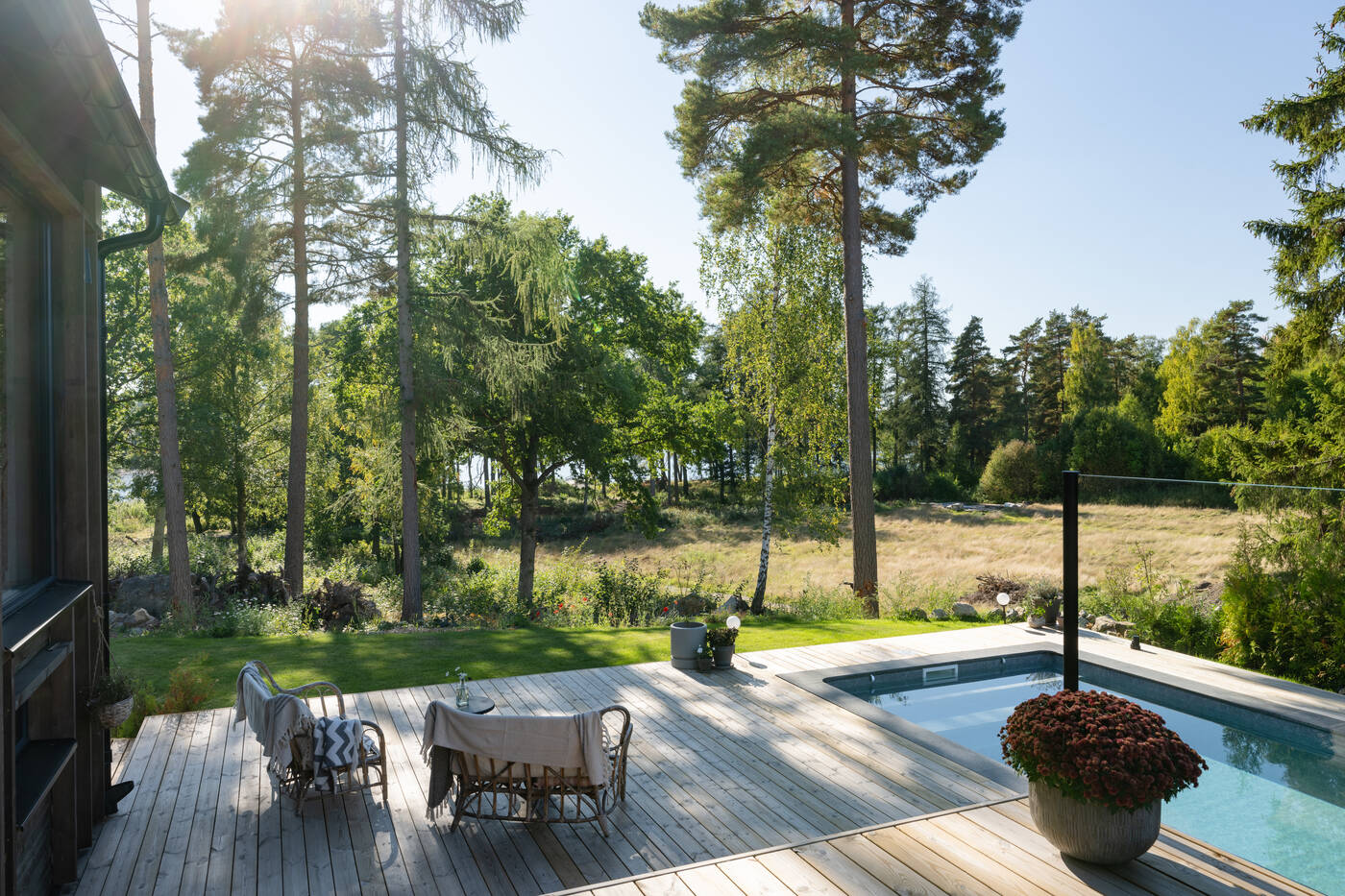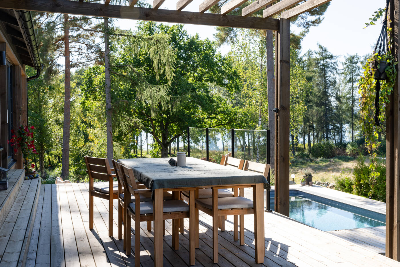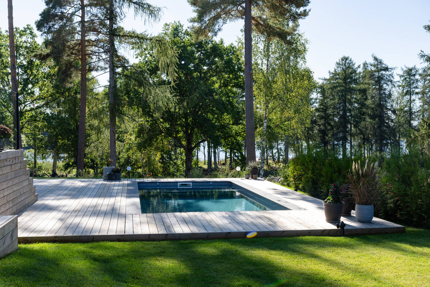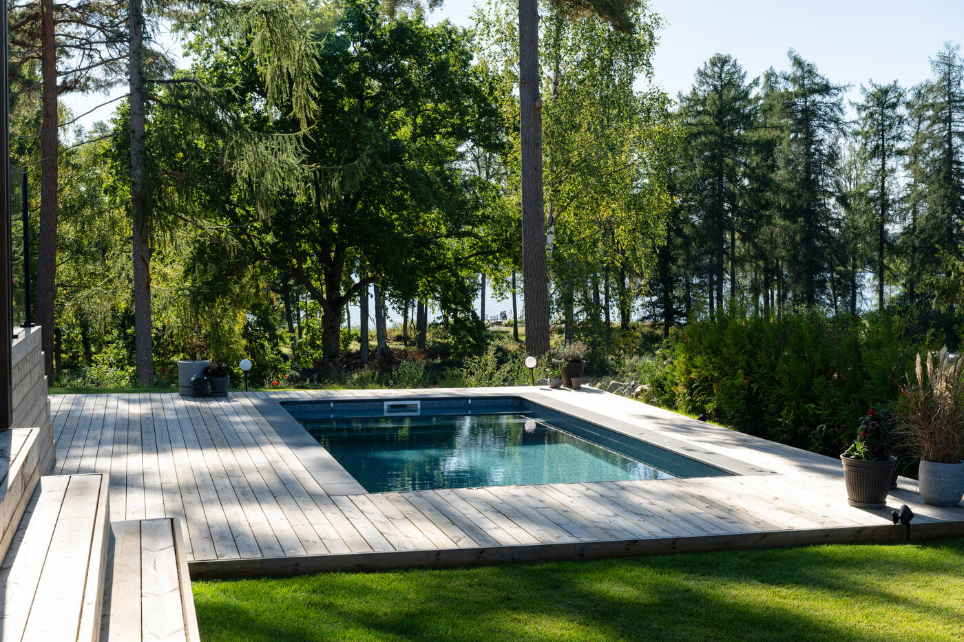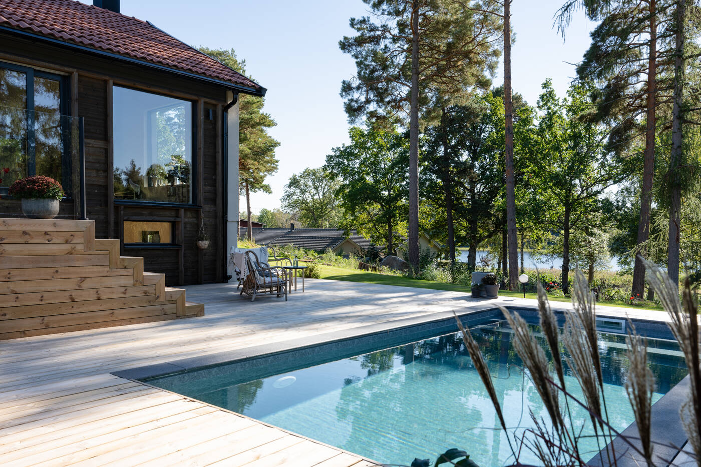 Den härliga poolen ligger i ett soligt läge med fantastisk utsikt mot vattnet. Här finns möjlighet för hela familjen eller med goda vänner avnjuta härliga sommardagar.