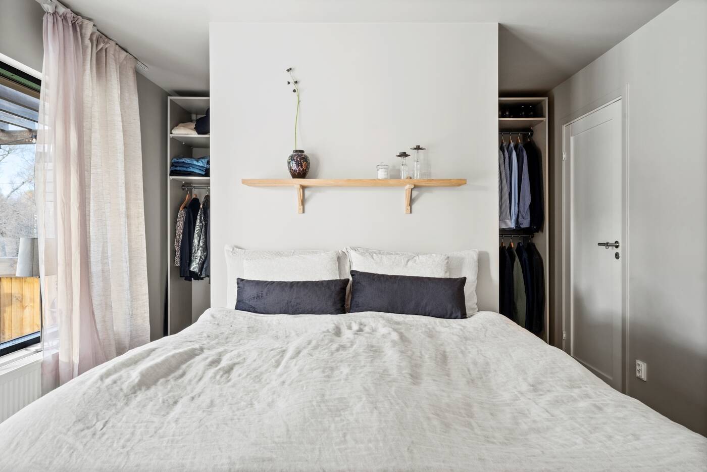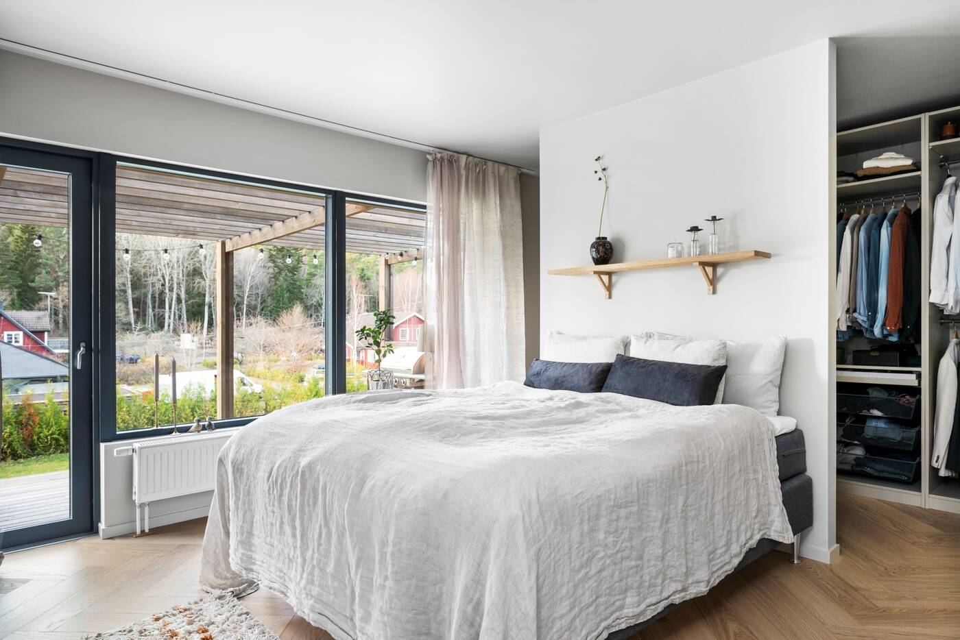 Trivsamt och rymligt sovrum med en klädkammare, här finns det gott om förvaring och plats för en stor dubbelsäng samt övrig möblering efter behov och önskemål.