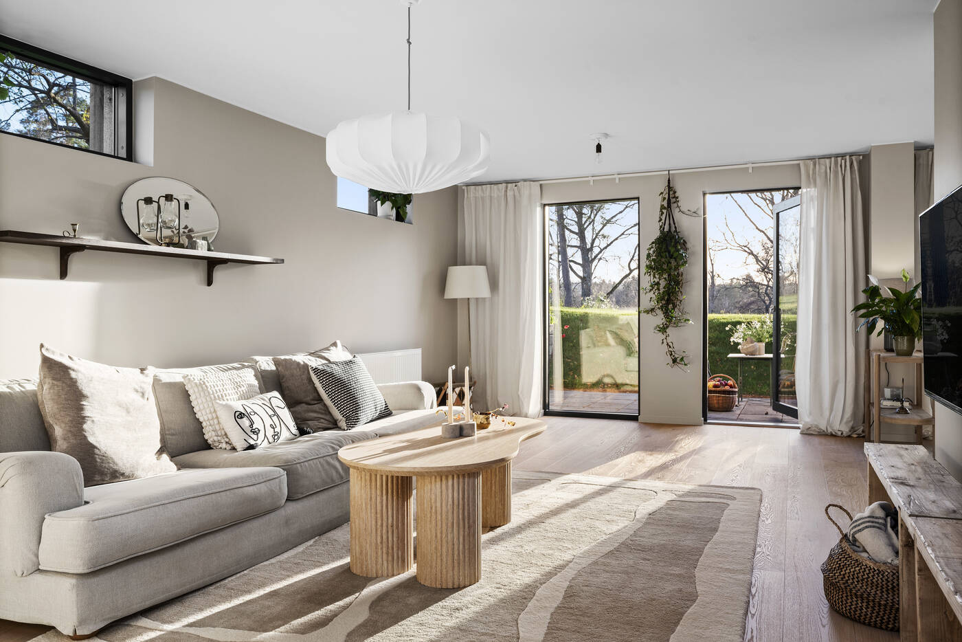 Trivsamt och härligt vardagsrum med gott om utrymme för en soffgrupp och övrig möblemang efter önskemål och behov.