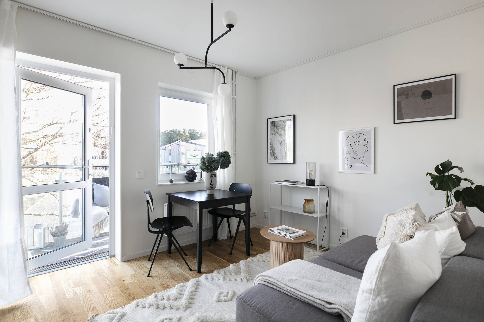 Bostadsrätterna är extremt välplanerade med ljus öppen planlösning mellan kök, matplats och vardagsrum. Stilrena materialval samt en solig balkong som gör att detta är något utöver det vanliga.